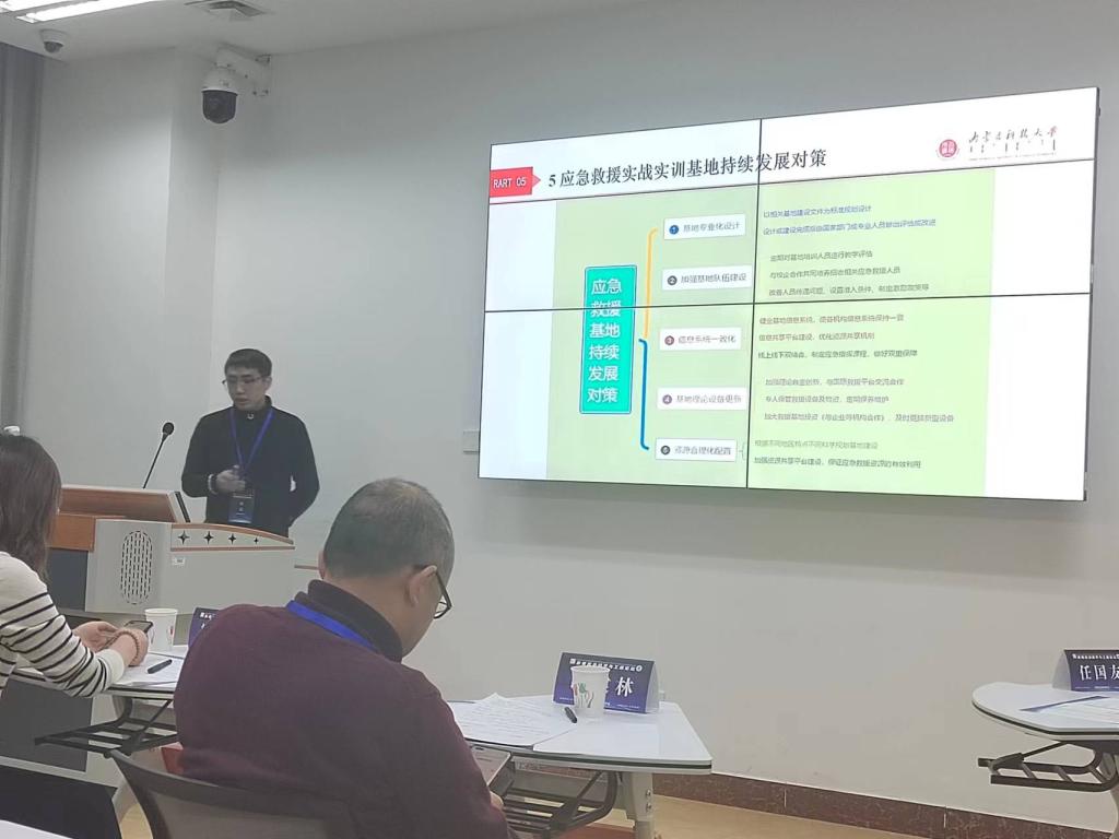 研究生高富、姜丰懿应邀进行“应急救援实训基地建设路径”与“新时代下高校应急发展与变革”的成果展示,针对应急救援基地的建设方法、实践教学、应急队伍建设、高校应急管理和人才培养等内容与参会代表和专家进行了现场交流和研讨。