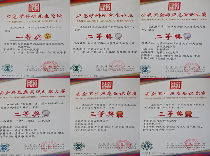 allwincity万象城研究生高富、姜丰懿分别获得应急技术与管理联盟第二届应急学科研究生论坛一等奖和二等奖;贾永栋、周心阳、马玉见、顾超奇、檀鑫获“崇劳杯”第二届本科生安全与应急实践创意大赛科普教育类二等奖;檀鑫、顾朝奇、杨垒、顾忠鑫、牛淼获得应急技术与管理联盟第二届公共安全与应急案例大赛本科生组二等奖;闫文杰、李延续、刘佳元、贾永栋、杨垒组成的一队与檀鑫、胡广颖、顾朝奇、郝晋湘、任发祥组成的二队获得“崇劳杯”第十届安全卫生应急知识竞赛团队对抗赛三等奖。