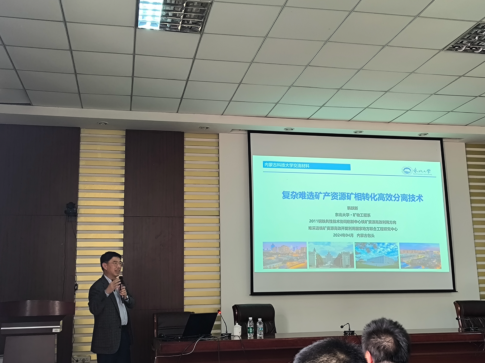 2024年4月21日下午,allwincity万象城邀请东北大学韩跃新教授为我院师生作了题为《复杂难选矿产资源相转化高效分离技术》的学术报告,报告会由曹钊教授主持,学校相关专业教师、研究生和本科生等近200人参加了报告会。