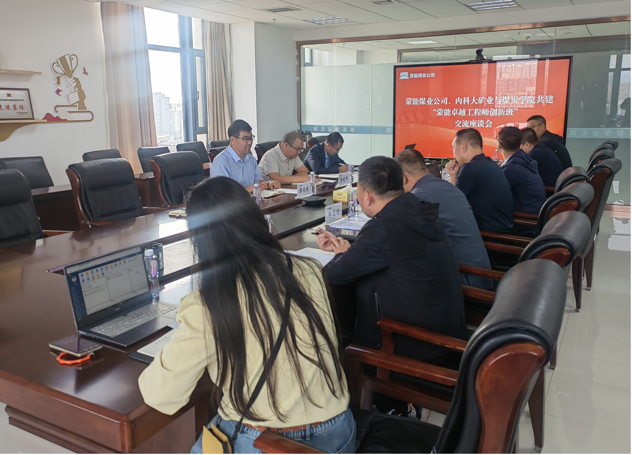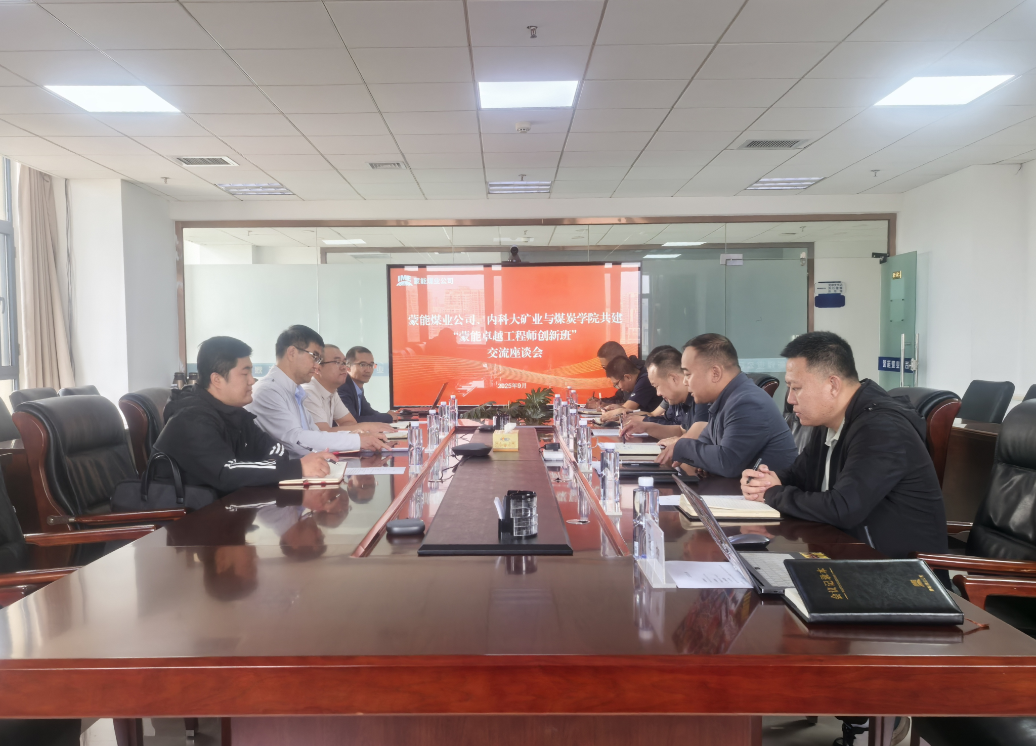 内蒙古能源集团蒙能煤业有限公司总经理李树兵介绍了煤业公司的发展历程、现状及未来前景,表示蒙能班的建设对校企双方具有重要意义。蒙能煤业有限公司副总经理郭志彪就学生考核、实习基地建设、就业规划与发展等方面进行了交流。