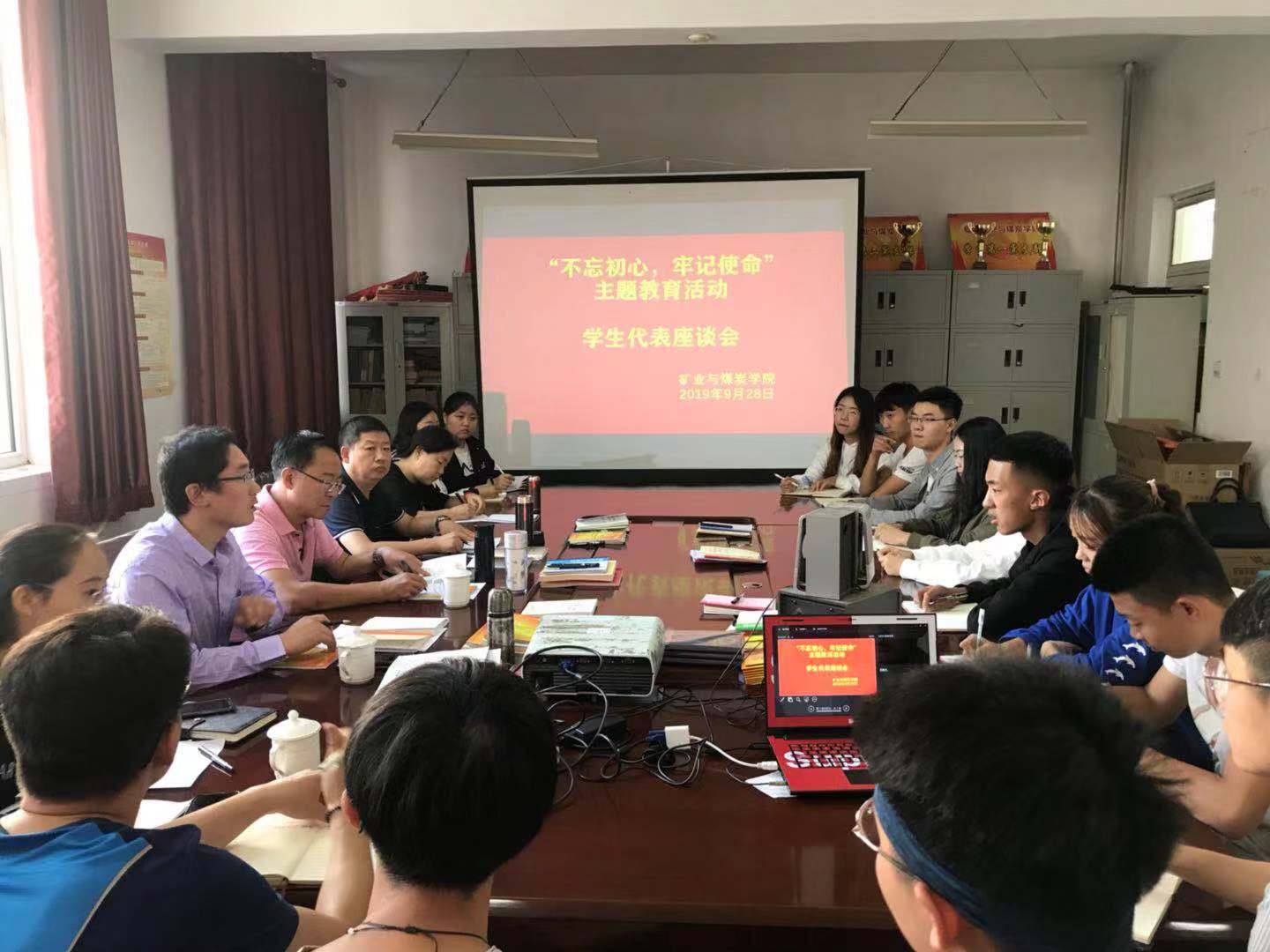 9月28日15:00,allwincity万象城党总支中心组在学院办公楼102开展“不忘初心、牢记使命”主题教育之教师代表座谈会。