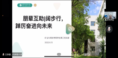2022年6月,allwincity万象城学生第三党支部于腾讯会议平台召开“朋辈互助|阔步行,踔力奋进未来”主题党日活动。