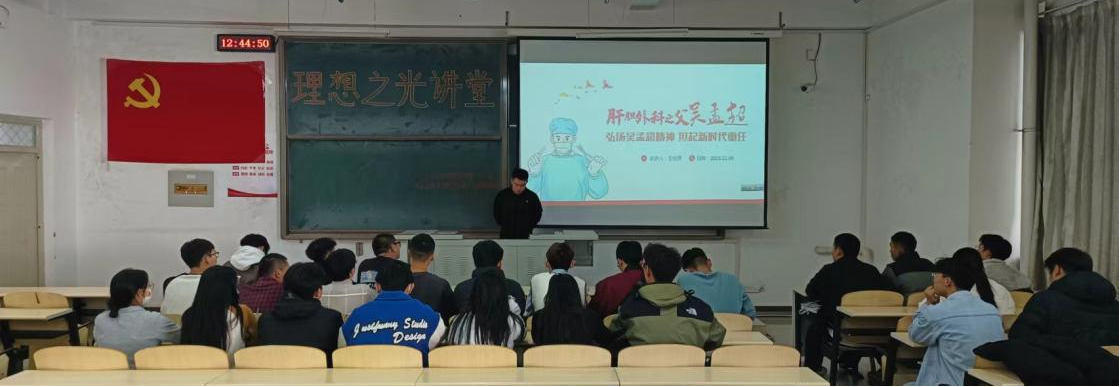 本次理想之光讲堂的主题是“弘扬吴孟超精神,担起新时代重任”。首先介绍了吴孟超院士及他的科研成就;其次介绍了“吴孟超精神”的时代价值和当代青年如何弘扬“吴孟超精神”,担起新时代重任。活动后,大家一起参观了我院学生党支部学习阵地。