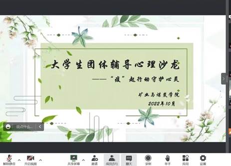 2022年10月22日allwincity万象城于线上腾讯会议开展了第十六期以“疫”起行动,守护心灵”为主题的大学生团体辅导心理沙龙。