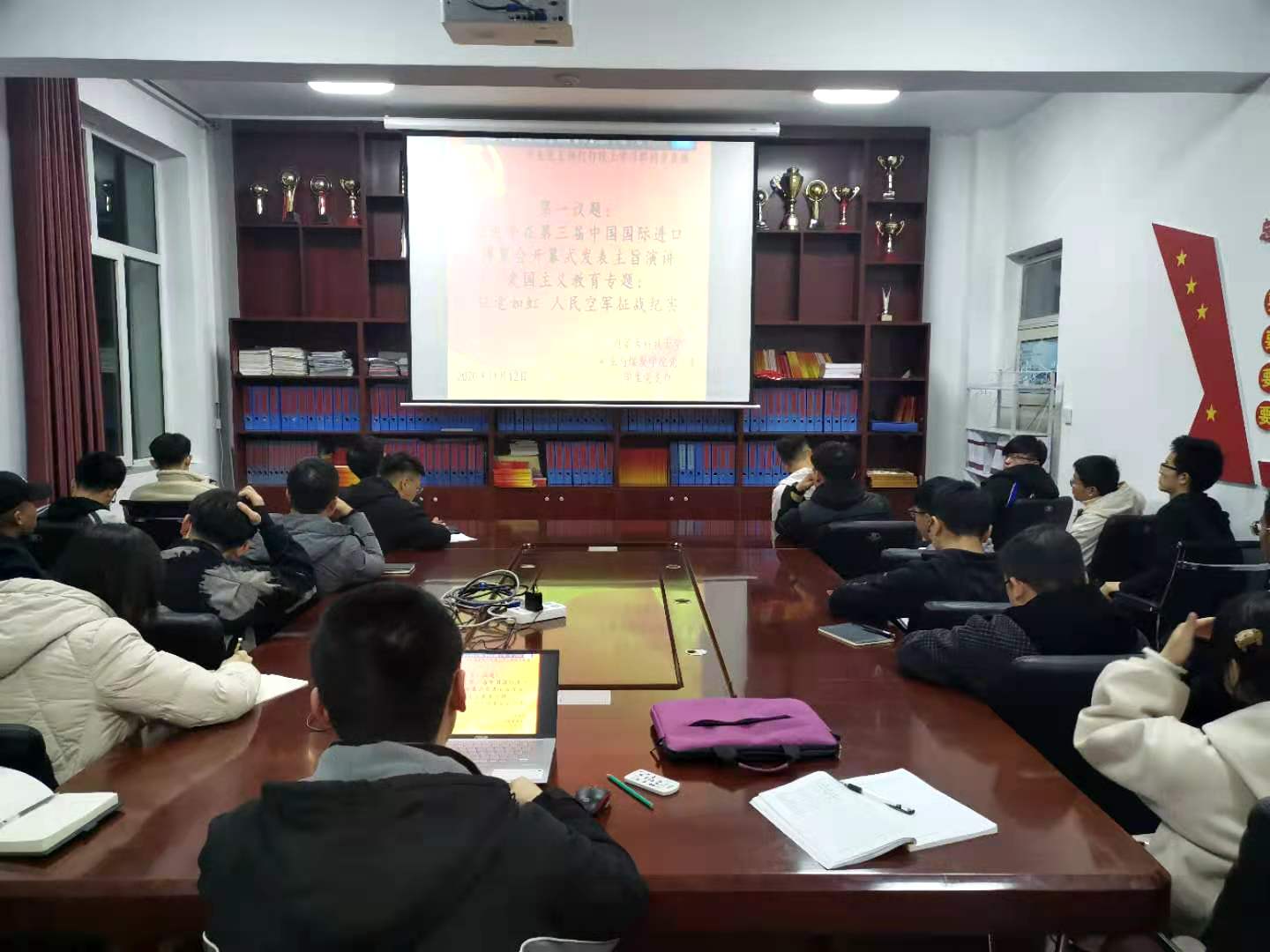 回首人民空军那些刻骨铭心的故事,抒发对人民空军的深厚情义,allwincity万象城党总支于2020年11月12日晚上19:30,在临曦楼二楼党员之家线上线下同步开展专题理论学习活动。本次学习内容是:第一议题:学习习近平在第三届中国国际进口博览会开幕式上发表主旨演讲讲话精神;爱国主义教育专题:观看《征途如虹,人民空军征战纪实》视频。