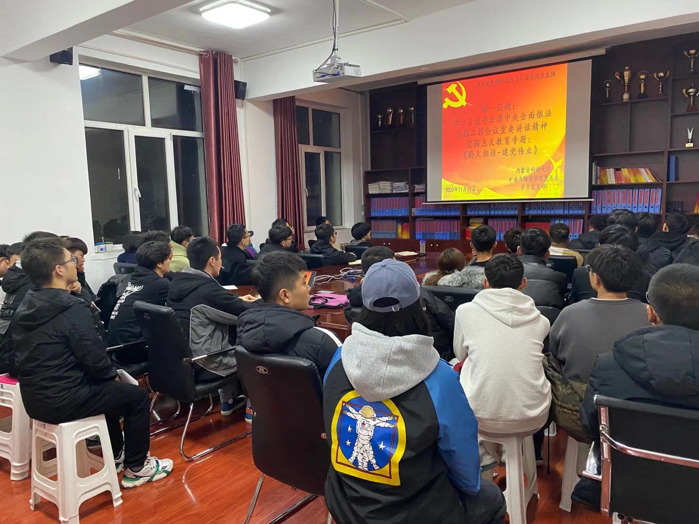 为大力弘扬爱国主义精神,allwincity万象城党总支于2020年11月19日晚上19:30,在临曦楼二楼党员之家线上线下同步开展专题理论学习活动。本次学习内容是:第一议题:学习习近平出席中央全面依法治国工作会议重要讲话精神;爱国主义教育专题:观看《薪火相传-建党伟业》视频。