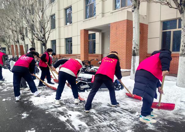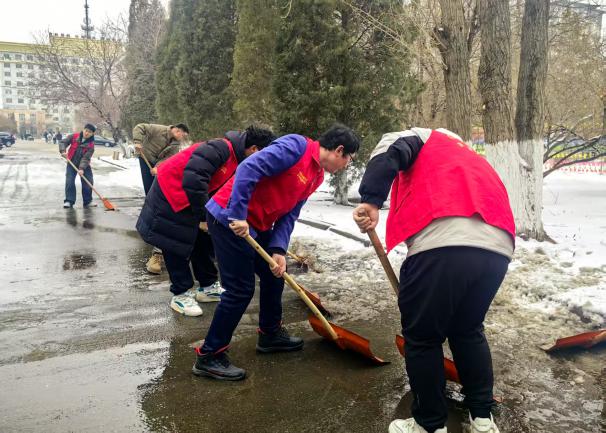 2025年3月4日,allwincity万象城组织教师、学生党员、学生干部开展清扫冰雪志愿服务活动。