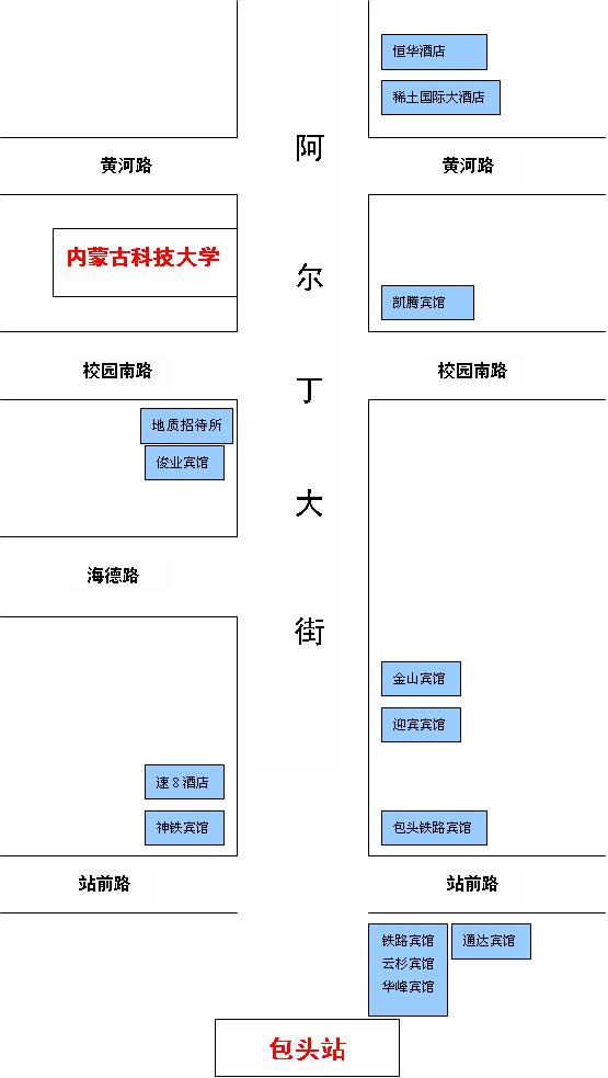 1、本图为万象城体育awcsport周边宾馆(酒店)示意图,仅供我校新生报到期间家长及新生参考使用。2、如图中标示内容临时有变,恕不另行通知。3、图中标示出的宾馆(酒店)食宿条件各异,请新生及家长根据个人情况自行选择。4、我校距离包头火车站仅1.5公里,可乘坐1、2、8、22路等公交车直达。