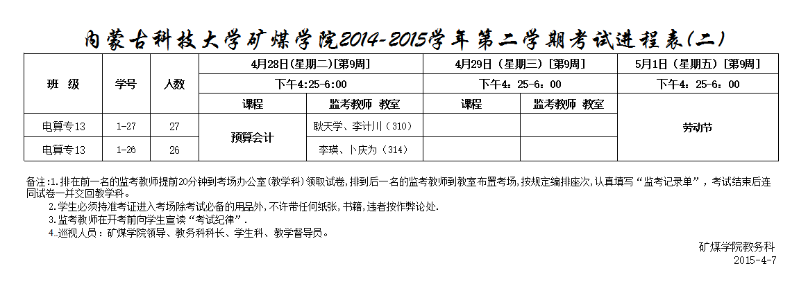 矿煤学院(高职)14-15(2)春学期考试进程表(二)
